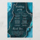 Guíe a sus invitados a través de su ceremonia con este elegante programa de boda que presenta un diseño de mármol de ágata azul teal acentuado con detalles plateados. El fondo inspirado en geodas crea un aspecto sofisticado, perfecto para bodas de otoño e invierno, celebraciones formales o eventos nocturnos. Diseñado para coordinar con su suite de papelería de boda, este programa es ideal para delinear su orden de servicio, fiesta de boda y momentos especiales de su día en un formato claro y elegante. La tipografía limpia garantiza la legibilidad y complementa la textura del ágata. Personalice fácilmente todo el texto para adaptarlo a los detalles de su ceremonia y cree una experiencia fluida y pulida para sus invitados.