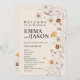 Programa de boda floral boho, a doble cara. El color principal de la tarjeta del programa es beige, con una combinación de flor silvestre y una tipografía boho.