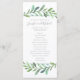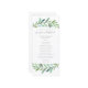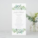 Un elegante programa de bodas botánicas bordeado por viñas de color azul-verde. El color de fondo se muestra en blanco, pero se puede personalizar para que coincida con el tema boda. Coordina perfectamente con nuestra colección de Bodas de vinos modernos.