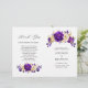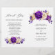 Elegante programa de bodas con temática de oro morado real con elegante ramo de púrpura real, Índigo, oro, flores de rosa de color amarillo y hojas de eucalipto. Comuníquese conmigo para obtener ayuda sobre la personalización o si necesita cualquier otro producto con este diseño.