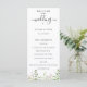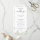 Elegante programa de boda botánico de flor silvestre con acuarela. El programa cuenta con un acento de caligrafía linda que dice "boda" con varias líneas para texto personalizado, incluyendo la ceremonia, el orden de los eventos, la fiesta de boda y una nota de agradecimiento. Diseñado para coincidir con nuestra colección botánica de flores silvestres elegantes.