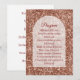 Un elegante programa de ceremonia de boda con un fondo de metal cepillado rosa dorado lujoso con un arco blanco moderno y acentos de brillo floral brillantes para un servicio de boda sofisticado en 2026.