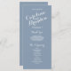 Una tipografía de escritura blanca preciosa sobre un fondo azul polvoriento hace que estos elegantes programas de boda modernos llamen la atención. Diseño de Elke Clarke © Personalice con el color de fondo y toda su información personal para un programa de boda de lujo que sus ujieres pueden entregar a sus invitados cuando entren en la iglesia o se sienten donde tendrá lugar la ceremonia. Ayuda a las personas a seguir durante la ceremonia, pero también actúa como un recuerdo para sus invitados. Puede utilizar los campos de plantilla para completar la información sugerida sobre su boda y orden de servicio y mensaje de agradecimiento o seleccionar "personalizar" y utilizar el menú de edición para cambiar el espaciado del texto, fuentes, colores como desee para crear sus propios programas de boda.