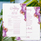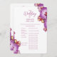 El moderno programa de bodas con orquídeas es una excelente opción para tu boda. Añade tu fiesta de bodas al frente. Los detalles del orden de servicio están en la parte posterior del programa junto con un mensaje personal de la pareja boda. Púrpura, ciruela y blanco. Utilice la plantilla para crear su propio programa de bodas orquídeas moderno.