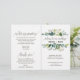 Este programa de boda con follaje es perfecto para una boda rústica. El diseño cuenta con un marco boho de hojas verdes y botánicos de follaje verde. Incluya el nombre de la novia y el novio, la fecha y ubicación de la boda, una cita corta, mensaje de agradecimiento, orden del servicio, grupo de la novia y un memorial "en memoria amorosa".