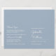 Un elegante programa de bodas azul polvoriento. Añada los detalles de su ceremonia especial de boda en una tipografía elegante de moda. Doble mano para crear un hermoso programa de bodas plegadas. Diseñado por Thisisnotme©
