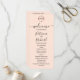 Un sencillo programa de boda de rosa melocotón con monograma de papel de aluminio dorado rosa y follaje chic. Fácil de personalizar con tus datos. Programa de boda moderno boho editable, invitación de boda con foto de guirnaldas, personalizable, fuente manuscrita de caligrafía, simple, elegante.