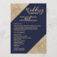 Elegantes y glamurosas esquinas de lentejuelas de purpurina dorada falsa y escritura dorada en un fondo azul marino, Programas de Boda. Este diseño clásico y sofisticado es perfecto para la pareja que se casa y es trendy y con estilo. Personalice con su propio mensaje en la parte frontal y un monograma inicial personalizado en la parte posterior. Todo el diseño es de impresión fotográfica.