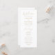Crea una impresión duradera con nuestro programa de boda bellamente diseñado, que presenta un elegante guión dorado escrito a mano sobre un fondo blanco crujiente. Perfecto para bodas modernas, este programa no solo es elegante sino también altamente personalizable. Agrega un toque personal al incluir tus nombres, fecha de la boda, ubicación y un orden detallado de los eventos. También puedes destacar a tu corte nupcial, asegurando que tus invitados estén bien informados y se sientan conectados con tu día especial. Diseñado con simplicidad y elegancia en mente, este programa de boda complementa cualquier tema de boda mientras mantiene una estética contemporánea y limpia. Haz que tu día de boda sea verdaderamente memorable con un programa que combina sofisticación con detalles personales.