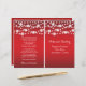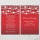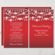 Cadena de luces y copos de nieve blancos programa doblado de ceremonia y fiesta de boda invernal roja con cadena de luces brillantes blancas con copos de nieve blancos en la parte superior sobre fondo de gradiente rojo. Este diseño de boda moderno y trendy es parte de un conjunto o colección de bodas, es totalmente personalizable y es perfecto para una boda de Navidad de invierno. Tendrás que doblarlo en el centro. Elige solo este tipo de valor de papel ya que se dobla bien. Algunos elementos cortesía de vectorportal.com.