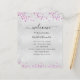 Un programa de boda moderno y elegante, línea de tiempo. Fondo con apariencia plateada falsa decorado con corazones pequeños de color fucsia y rosa. Personalice y agregue sus nombres y detalles de la boda. Letras de color negro.