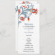 Inspirado en el estilo de pintura tradicional noruego rosemaling, este programa de boda presenta un diseño de borde circular de espiral azul con flores naranjas, grises y rojas sobre un fondo blanco. Las partes del texto de esta invitación son personalizables. La parte delantera de la tarjeta presenta el orden de los eventos, mientras que la parte trasera muestra a los participantes de la boda. Este artículo es parte de una colección, por favor visite nuestra tienda Borghild's Boutique para otros artículos coincidentes.