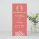 Este diseño cuenta con una barrera de coral y un par de caballos de mar. El fondo es de color salmón naranja rosa bonito. Personalice este programa con los detalles de su boda. Son ideales para celebrar bodas de temática playera, oceánica, costera y de destino. Por favor, envíeme un mensaje si necesita ayuda para la personalización. La espalda se puede complicar especialmente si tienes mucha gente en tu fiesta de boda.