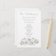Un tamaño mayor de 5,5" x 8,5" a un precio económico, en una elegante reserva LINEN de 110 lb - para un ambiente de lujo a una gran relación calidad-precio, es perfecto para invitaciones, menús, programas, etc. Esta alternativa de tamaño de presupuesto de 5,5 x 8,5" también está disponible en otras opciones de papel. El material de la tarjeta SEMI-GLOSS de 110 lb es aproximadamente del mismo grosor que una postal, por lo que también funciona bien para las invitaciones. El papel FELT de 100 libras es de color buff, NO blanco, por lo que añade un toque rústico. El material de papel MATTE 80lb es blanco brillante, para impresión crujiente, excelente para sus menús y programas, mientras que el papel SATIN de 80 libras es muy delgado y ligero. Programa de Boda de Calabazas Blancas con Precios. Un diseño minimalista con calabazas blancas y flores y follaje verde azulado con un guión definido para El Boda de. El resto del texto en ambos lados puede ser fácilmente personalizado.
