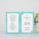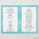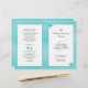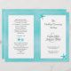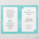 Temática tropical, acuática y blanca, plegada (por cliente) plantilla de programa de boda hecha para una larga ceremonia católica te permite añadir mucho texto a las cuatro páginas. Las escrituras cristianas o un verso se pueden agregar a la página de atrás junto con un mensaje de agradecimiento a la familia, amigos e invitados.