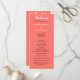 Bienvenidos a sus invitados bodas con estos programas de bodas coralinas brillantes con textos en blanco y negro. Personalice la parte delantera y trasera con los detalles de la ceremonia de novias y novios para satisfacer sus necesidades. Diseñado para seis damas de honor y padrinos de honor. Si tiene una fiesta de boda más pequeña, simplemente elimine las filas extras de damas de novia y de padrinos que no se necesitan, y elimine el espaciado adicional entre encabezados haciendo clic en el botón borrar para mover la fila hacia arriba para mantener el espaciado de uniformidad. Si agrega más de seis personas a cada una de estas, muchos necesitan hacer clic en Personalizar para reducir el tamaño de fuente. Si necesita ayuda para editar aún más, haga clic en contactar con este diseñador para obtener ayuda sobre la ubicación. Diseños originales de TamiraZDesigns.