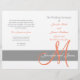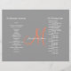 Programa de Boda con Coral de Peach, Color Gris y Blanco con diseño inicial monocromático sencillo y moderno. Utilice la opción "IT PERSONALIZAR" para editar texto y cambiar el espaciado, etc. del texto de ejemplo para añadir su propia información. Necesita ayuda o le gustaría un color diferente, por favor contacte luxuryweddinginvitations@gmail.com