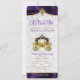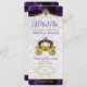 Coche dorado con dosel de terciopelo de color violeta ultra con ribete de cadena de eslabones dorados, acento decorativo de oro blanco y opciones de fondo de damasco blanco.