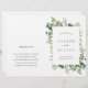 Este programa de bodas presenta eucaliptos de color de agua pintados, hojas verdes y caligrafía simple. Para una personalización más avanzada de este diseño, haga clic en el enlace "Personalizar más adelante". También están disponibles los elementos coincidentes. NOTA: Necesitarás doblarlas a la mitad cuando lleguen.