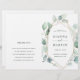 Este programa de ceremonias bodas presenta eucalipto de acuarela pintada y hojas botánicas verdes con un marco geométrico de oro. NOTA: Necesitarás doblarlas a la mitad cuando lleguen.