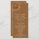 Un girasol dibujado a mano, en un fondo de burlap ilustrado, representa este programa de bodas para la boda de otoño.