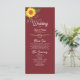 Moderno, elegante, boho, programa de boda botánico de terracota con corazón de cuerda dorada, girasol y letra de moda.
