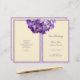 Lavanda y crema, programa de ceremonias bodas. Doblado con texto personalizado en cuatro lados, crear este hermoso programa para usar en una boda de verano, en el jardín. Una gran hortensias violeta de bonito decora la parte superior y se mostrarán en las páginas delantera y trasera. Incluya una nota de agradecimiento en la parte posterior.