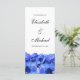 Un elegante programa de bodas de hidrangea azul sobre fondo blanco. Personaliza fácilmente tu evento.