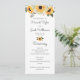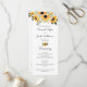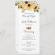 Este rústico programa de bodas de girasol es perfecto para una ceremonia al aire libre en el jardín. Cuenta con hermosos girasoles acuáticos con vegetación rústica de salvia verde y el aliento del bebé. Es perfecto para una boda en el jardín o para un boda de granero. El color amarillo y verde sabio es una paleta de colores encantadora para una boda de finales de verano o otoño. Para una mayor personalización, haga clic en el enlace "personalizar adicional" y utilice nuestra herramienta de diseño para modificar esta plantilla.