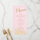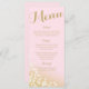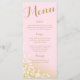 Menú de diseño de tonos rosa y dorado con efecto bokeh. Personalizar con detalles del boda, información de la ceremonia, menú o cualquier texto en esta tarjeta de dos caras.