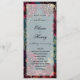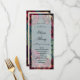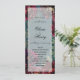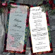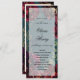 Un verde azulado programa de bodas en tonos azul y burdeos para coincidir con la invitación de boda del mismo nombre. Este programa presenta el borde de la invitación, una sinfonía de peonías rojas de frambuesa profundas adornadas con aerosol de oro y contornos de oro brillantes sobre un fondo de lavado de acuarela azul profundo, con inserción opaca en la parte delantera y una inserción sólida de blanco en la parte posterior para la escritura.