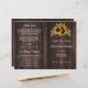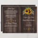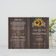 Diseño de tarjeta de boda campestre rústica con ramos de girasoles de acuarela, una forma semitransparente con un marco texturizado, flechas con corazones y girasoles como divisor, todo sobre un fondo de granero antiguo. Utilice la herramienta Personalizar para agregar su información. Los artículos coincidentes se pueden encontrar en mi Colección de Girasoles Rústicos de Granero Antiguo.