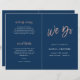 LEAH ・ Este folleto sobre el programa de bodas de oro azul marino y rosa es perfecto para bodas románticas y elegantes. La pasión viene dada por el tipográfico tipográfico escrito a mano en la textura de Relieve metalizado de oro rosa "falso", mientras que el elegante fondo marino combinado con el texto en blanco añade un toque de precisión. Esta colección se coordina bien con celebraciones glamorosas, especialmente para eventos interiores, de otoño o de invierno.