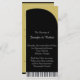 Este hermoso y divertido diseño, llamado Boda de Piano Negro y Oro, tiene un hermoso diseño inspirado en la música. El fondo es oro con un borde negro. En la parte delantera hay un ilustracion de piano de cola blanco y negro - el texto se pasa por encima del piano por encima del teclado. Perfecto para un estilo moderno o un boda temático. Este conjunto tiene invitaciones, guarda las tarjetas de fecha, las tarjetas de respuesta, las tarjetas de agradecimiento, las tarjetas de carpa de número de tabla, los sellos para sobres, las etiquetas de los vinos, las carpetas, las etiquetas de las direcciones de retorno y muchos más artículos de papel de boda, favores y regalos disponibles. Usa los pegatinas de sello para sobres para cualquiera de tus regalos de bricolaje - estos están disponibles en tamaños grandes y pequeños! Todos los elementos están impresos en nuestros productos de alta calidad, no incluyen oro, joyas, bordados u otros elementos textiles reales. Todos los diseños son derechos de autor Notable Expressions, Inc. Todos los derechos reservados.