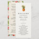 Elegante y tropical piña, flores y vegetación con tipografía clásica serif programa de boda.