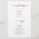 Moderna y sencilla tipografía minimalista de moda ceremonia blanca limpia y fiesta BUDGET programa de boda asequible (tipo de publicidad) PAPER FLYER plantilla con un guión de moda de moda de imitación de rosegold calligraphy. ++++++++++++ Fácil de personalizar con la foto y el texto de su personalizado en ambos lados! ++++++++++++++ LEA ESTO ANTES DE COMPRAR! Se trata de una tarjeta de bajo costo impresa en un FLYER. ++++ Tenga en cuenta que el PAPEL PRESUPUESTARIO ES DELGADO - Puede actualizarse para que esta tarjeta se imprima en el material de caja +++ ENVELOPES NO INCLUIDOS.
