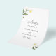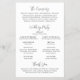 Elegante floral barato volante del programa de bodas con un diseño sencillo con marquesinas blancas pintadas en la esquina superior izquierda y en la esquina inferior derecha junto con "bienvenido" en un hermoso guión manuscrito. La parte trasera tiene tu orden de ceremonia, fiesta de boda y mensaje de agradecimiento. Este moderno programa de bodas con flores de margarita es ideal para un boda de primavera o verano.