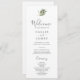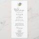 Este moderno programa de bodas en una rama de olivo es perfecto para un boda boho. El diseño rústico y elegante presenta una sencilla acuarela de hojas botánicas verdes y aceitunas negras en una pequeña rama de ambiente mediterráneo clásico. Incluya el nombre de la novia y el novio, la fecha y ubicación del boda, el mensaje de agradecimiento, el orden de servicio, la fiesta de novias y un monumento opcional "en memoria amorosa".
