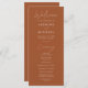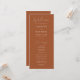 Crea una impresión duradera con nuestro programa de boda bellamente diseñado, que presenta un elegante guión blanco manuscrito sobre un fondo de terracota. Perfecto para bodas modernas, este programa no solo es elegante sino también altamente personalizable. Agrega un toque personal incluyendo tus nombres, fecha de la boda, ubicación y un orden detallado de los eventos. También puedes destacar a tu corte nupcial, asegurando que tus invitados estén bien informados y se sientan conectados con tu día especial. Diseñado con simplicidad y elegancia en mente, este programa de boda complementa cualquier tema de boda mientras mantiene una estética contemporánea y limpia. Haz que el día de tu boda sea verdaderamente memorable con un programa que combina sofisticación con detalles personales.