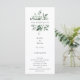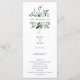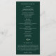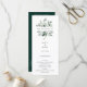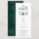 Elegante marco de vegetación de acuarela, programa de boda. Texto de plantilla lista para el orden de los eventos de la ceremonia, cortejo nupcial y nota de agradecimiento. El color de fondo se muestra en verde bosque oscuro, se puede personalizar.