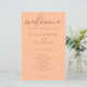 Peach es el nuevo color de tendencia para los eventos de verano. Nuestro programa de bodas con melocotón dulce presenta una elegante escritura marrón clara para un evento minimalista y de moda por la tarde para una novia femenina que ama mantenerse actual y moderna.