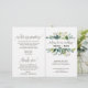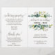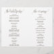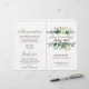 Este programa de boda de follaje es perfecto para una boda rústica. El diseño cuenta con un marco boho de hojas verdes y elementos botánicos de vegetación. Incluya el nombre de la novia y el novio, la fecha y ubicación de la boda, una cita corta, mensaje de agradecimiento, orden del servicio, fiesta de bodas y un memorial "en memoria amorosa".