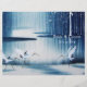 Pintura vintage de una historia de nieve de invierno con aurora boreal, un lago y garzas blancas. Los frutos representan fuerza, pureza, paciencia y larga vida.