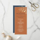 Bohemia, moderno, elegante, lujoso programa de bodas azul marino y terracota, con encaje floral dorado y escritura de caligrafía moderna.