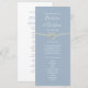 Presentamos nuestro elegante programa de boda azul polvoriento. Con su diseño minimalista y estética moderna, adornado con un encantador corazón de cuerda dorada, este programa emana elegancia y sofisticación atemporales.