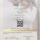 Una invitación de boda moderna, ecológica y todo en uno diseñada para reducir el desperdicio y simplificar tu papelería, mientras sigue luciendo atemporal y elegante. Este diseño único incluye un monograma personalizado, tu foto, una línea del sitio web de la boda y un código QR para una respuesta rápida.
