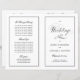 Este programa es una página de volantes de 8.5 x 11 que requiere que la doble para ensamblar. Clásico programa de boda en blanco y negro con un toque moderno que presenta la elegante escritura de la palabra "Boda" en la "portada" exterior con borde negro. Todo el texto es editable, puedes mover o eliminar cualquier cosa que no necesites.