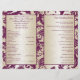 Este programa de boda de damasco de ciruela y champán de 8,5" x 11" tiene una cinta falsa con un broche de joya de cristal. Coincide con la invitación que se muestra a continuación y es totalmente personalizable. Está diseñado para ser doblado por el centro. Todo el texto es personalizable. Envíe un correo electrónico a niteowlstudio@gmail.com si necesita ayuda con la personalización de este, o si tiene alguna pregunta o solicitud. ****POR FAVOR TOME NOTA de que el papel de mayor grado es un cartón y no se dobla bien.
