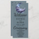 Presentamos nuestro Programa de Bodas Celestiales de Caída de la Noche en una sofisticada sombra gris azul de acero, diseñado para añadir un toque de mística a su celebración de bodas de temática celeste. El programa presenta un diseño contemporáneo y elegante, con una impresionante luna azul y media luna negra en el centro del escenario. La luna, con un fondo de serenas nubes azules y grises, está adornada con delicadas estrellas azules y rosas de oro, creando una obra maestra celestial que cautiva la imaginación. Este programa nupcial es una elección perfecta para parejas que buscan un tema boda único y encantador. La etérea paleta de colores de acero gris azul, azul profundo y dorado rosa resplandeciente evoca una sensación de asombro celeste, marcando el tono de una noche llena de magia y romanticismo. La combinación de estos colores crea una armonía armoniosa, invitando a sus huéspedes a unirse a usted en un viaje apacible bajo el cielo nocturno. En la parte trasera del programa se enumera cuidadosamente tu preciada fiesta de bodas, reconociendo sus roles en tu día especial. El texto dentro del programa se presenta de forma elegante en negro y gris clásico, utilizando un tipo de letra simple en bloques para mayor claridad y legibilidad. Sin embargo, las palabras "Bienvenidos", "Ceremonia" y "Fiesta de la Boda" están elaboradas de manera intrincada en un tipo de letra de escritura decorativa, agregando un toque de gracia y sofisticación al diseño general. Eleva tu experiencia boda con nuestro Programa de Bodas Celestiales de Caída de la Noche, una bella y encantadora adición a tu celebración celestial. Perfecto para las parejas que desean un boda que se siente como un sueño mágico, este programa prepara el escenario para una noche llena de amor, maravilla y encanto celeste. Elija este encantador diseño para hacer que su día de boda sea inolvidable.