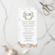 Las iniciales de la pareja de bodas se colocan dentro de una corona abierta en la parte superior de este programa de bodas. Las flores rosas y blancas crean una hermosa corona y un borde inferior. Este programa de bodas forma parte de la colección de Bodas florales blancos y rosas de Rubor.
